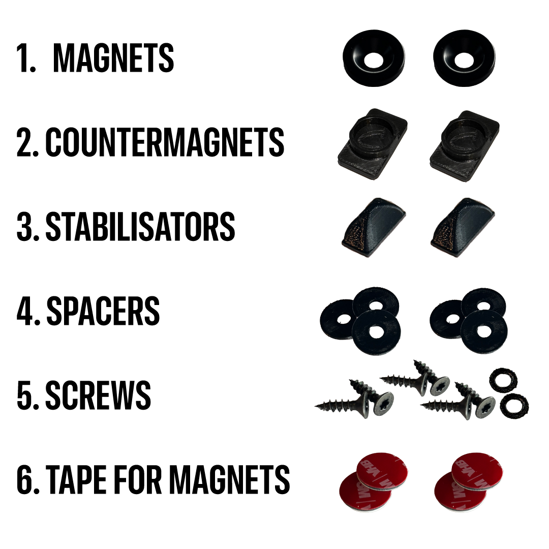 In the box you have your Counterparts, Magnets and Accessories.