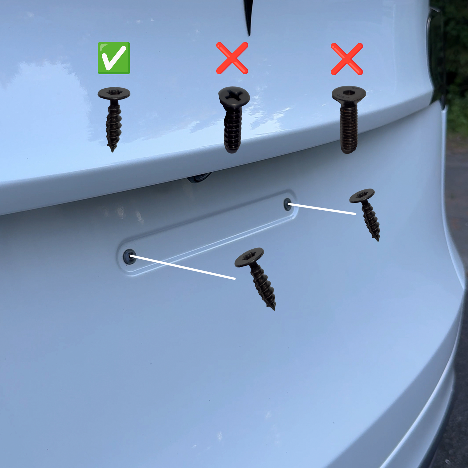 Now test which screw you will use to install the kit, or use double sided tape. Remember that tape might not fully cure on top of ceramic coated paint.